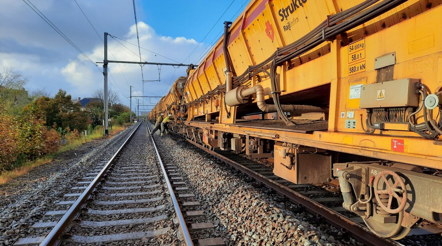 Tijdens de herfstvakantie (30 oktober – 7 november) vernieuwden we samen met onze Nederlandse collega’s ballast tijdens een negendaagse TLO op de Lijn 50A Brugge en Jabbeke, en dat over een traject van 18km.